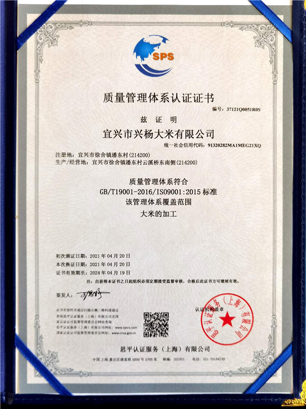 宜興市興楊大米有限公司坐落于江蘇宜興市徐舍鎮(zhèn),是一家集水稻種植、收購、加工、銷售與一體的江蘇無錫市農業(yè)產業(yè)化龍頭企業(yè)。本公司多年被評為“無錫市放心糧油示范加工企業(yè)”,“江蘇省糧食經營者守法誠信A級企業(yè)”等。2020年12月獲得“無錫好米”金獎。注冊資本1200萬元,已具備年產5萬噸大米的加工能力。